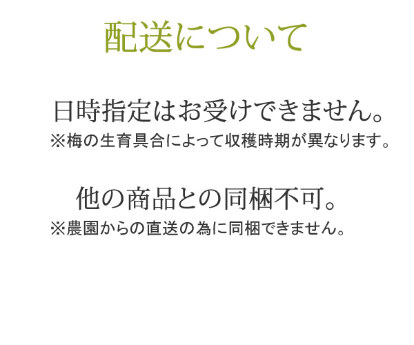 ・産地直送の為に他の商品(梅干、梅製品)とは同梱が出来ません。