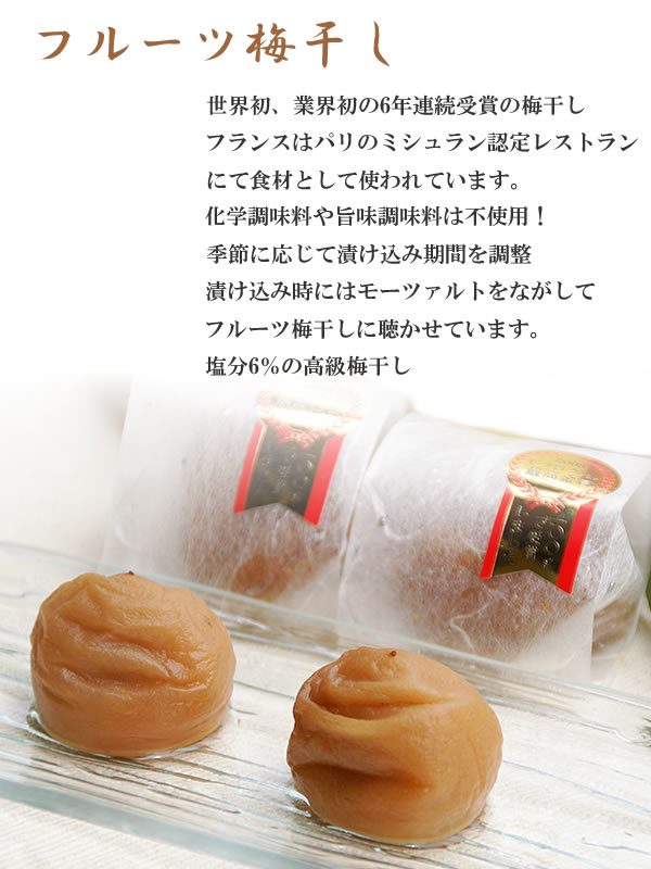 モンドセレクション最高金賞受賞梅干,フルーツのような梅,フルーツ梅干,塩分5%~6%梅干,